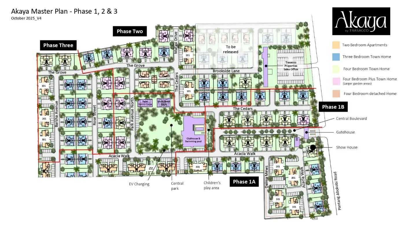 An exclusive estate directly off Pantang Abokobi Road, less than 1 km from the N4 highway, offers unparalleled access to town. Choose from 2-bedroom apartments or 3- and 4-bedroom townhomes, boasting modern design, private gardens, balconies or terraces, and vibrant street views.