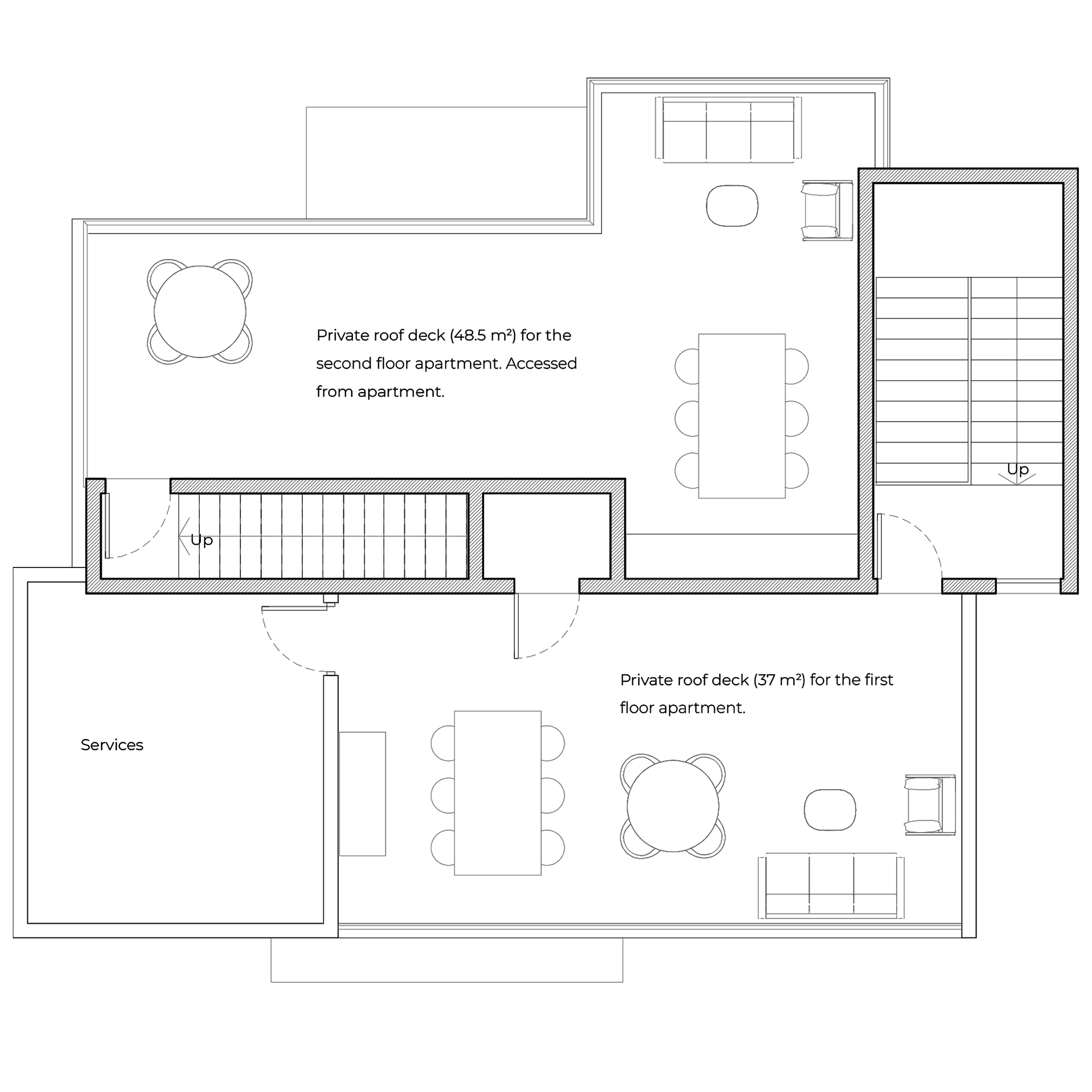 2nd floor deck 48.5sqm / 522 sq.ft